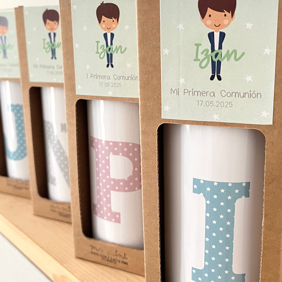 Si hay algo que marca la diferencia en los detalles de comunión es la personalización. Añadir el nombre del niño o la niña y la fecha del evento transforma cualquier regalo en algo único.