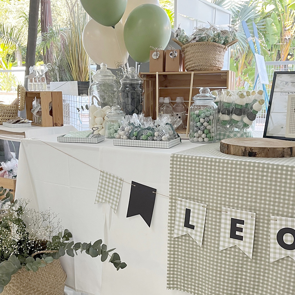 Con nuestros diseños puedes decorar la mesa candy con un estilo precioso y totalmente personalizado, añadiendo:
