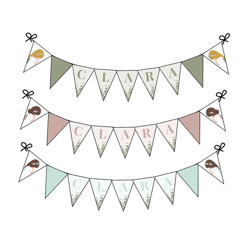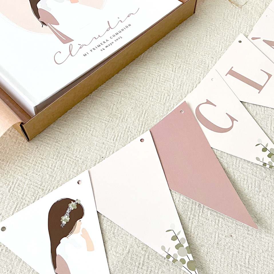Elige entre los colores para el fondo. ¡Indica su nombre en el cuadro de texto y personalízalo eligiendo el avatar con más parecido al comulgante! Cada guirnalda incluye de 7 a 11 banderines dependiendo del nombre a personalizar. La guirnalda contiene 2 banderines iguales con el color de fondo elegido, el resto irá con letras en color acorde.